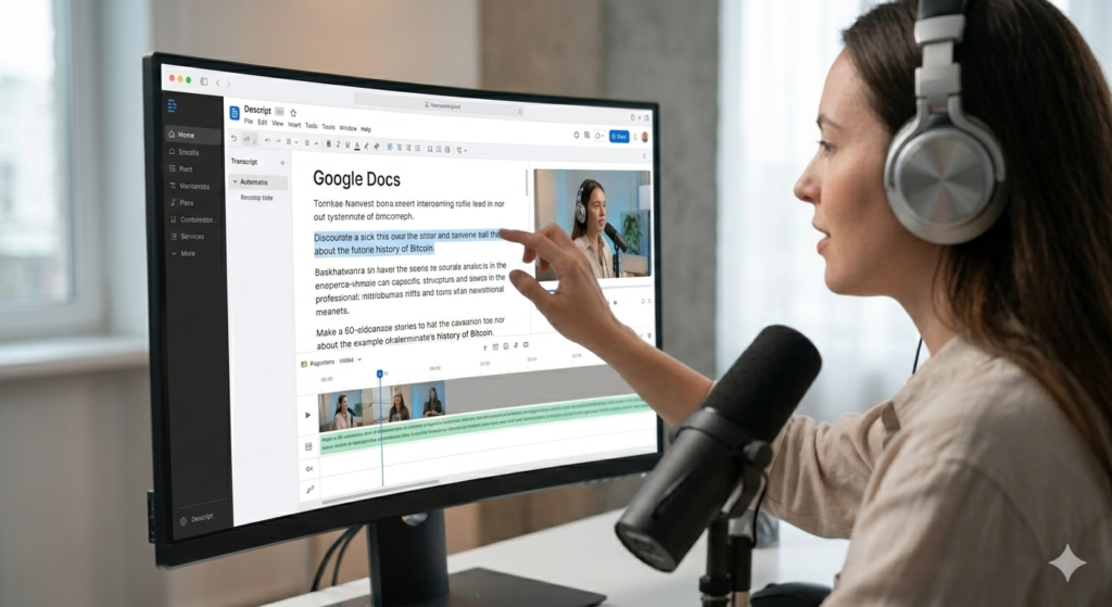 The Time-Saver: Descript transcribes your video instantly. To delete a "flub" or a boring tangent, you just highlight the text in the transcript and hit delete—the video edits itself.