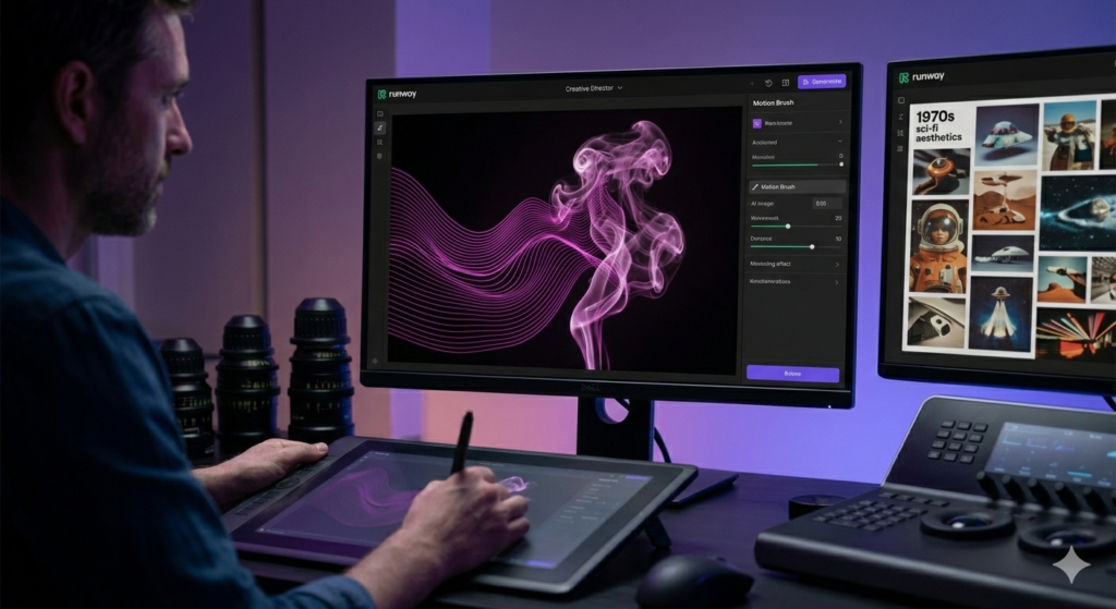 The Time-Saver: Video-to-Video Transformation. You can film a rough sketch on your phone and tell Runway to make it look like a 1970s sci-fi film. It fills in the aesthetic gaps for you.